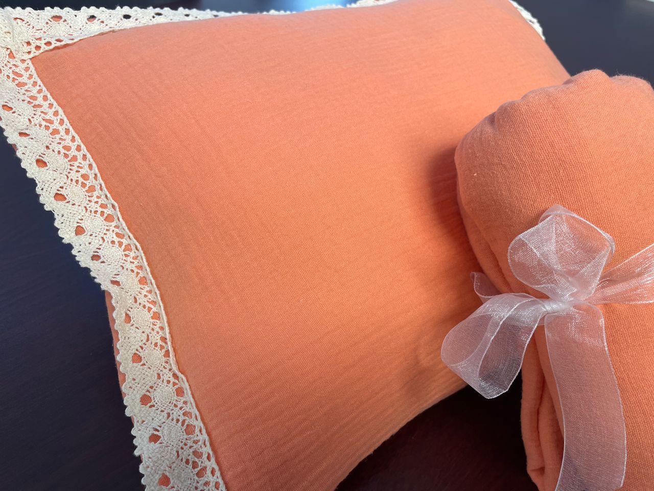 Duo lit bébé – Gaze de coton Pêche